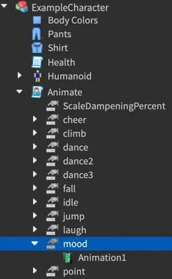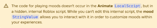 animateScript.mood.Animation1.AnimationId = "rbxassetid://7715145252" -- Mood